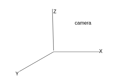 In a Hopara application, you navigate around a three dimensional space as noted in Figure 2. Here you see three axes, denoted X, Y, and Z. In a geographic setting, think of X as longitude, Y as latitude, and Z as height (altitude). However, the axis can mean lots of things other than geographic coordinates, as we will see presently. In addition, Figure 2 contains a camera at a specific position in this space, looking down on the X-Y landscape. You can move the camera sideways by panning and vertically by zooming/unzooming.
