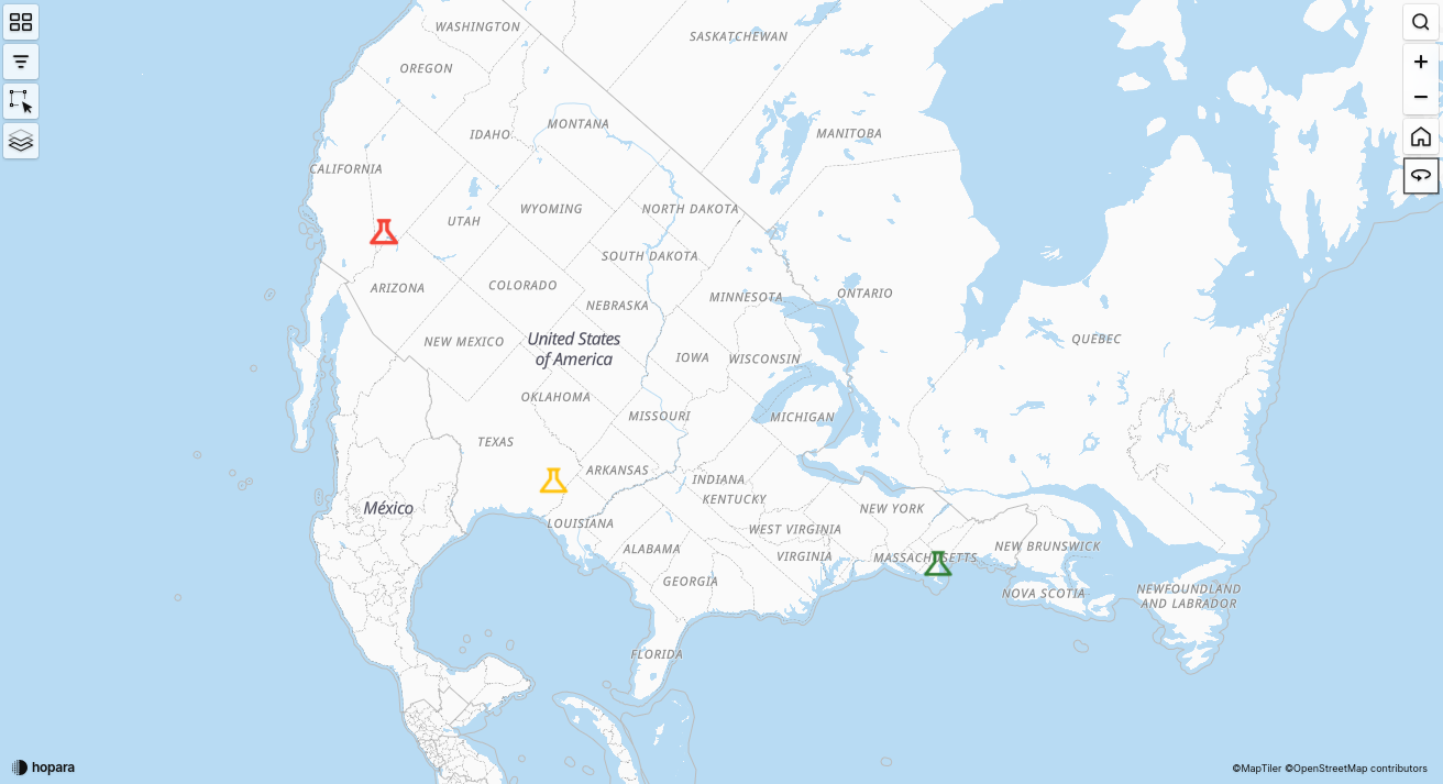 Most of you are familiar with Google maps, which has the same pan/zoom paradigm for geographic maps. Hopara significantly generalizes Google Maps, so you can think of Hopara as Google Maps on steroids, if you wish. The “basic labs” application exploits a geographic paradigm, so this section should seem familiar. Return to Figure 1, so we can explain the navigation controls on the right side of the screen.